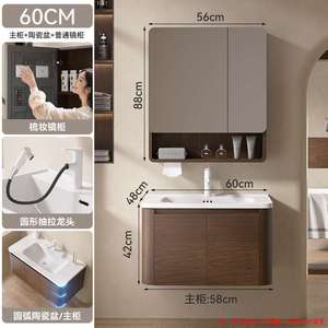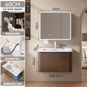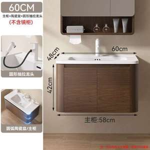 胡桃木60cm主柜+智能圆弧层架镜柜