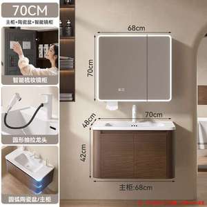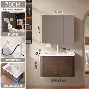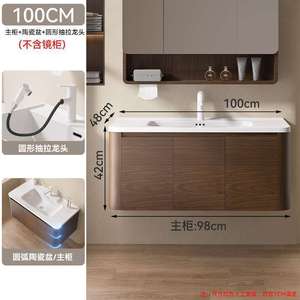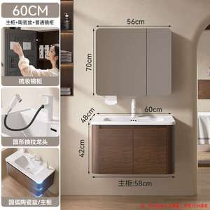 中古风胡桃木蜂窝铝圆弧浴室柜陶瓷一体洗手盆洗脸池太空铝洗漱台