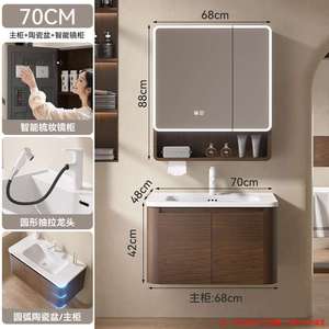 胡桃木70cm主柜+智能圆弧层架镜柜
