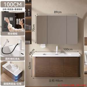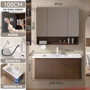 胡桃木80cm主柜+智能圆弧层架镜柜