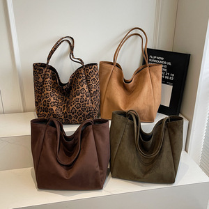 大容量豹纹托特包2025秋季新款麂皮绒单肩包日常通勤外出韩版ins