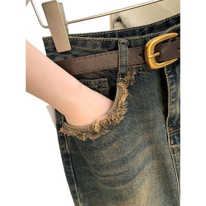 毛边直筒牛仔裙女秋季2025新款高腰显瘦中长款半身裙设计感一步裙