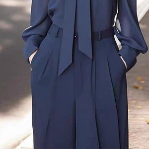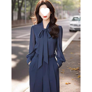 藏青色雪纺套装 雪纺上衣+阔腿裤