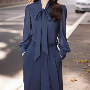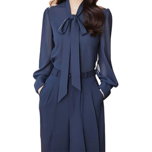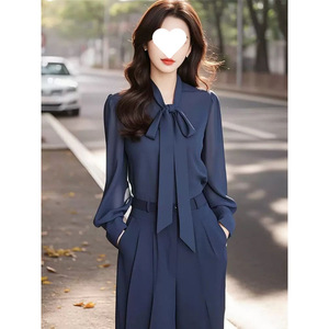 2025秋季款纯色蝴蝶结时尚女士衬衫套装气质高级感笙陇