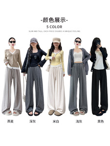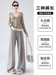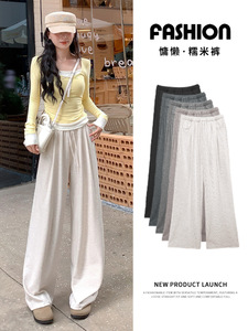 慵懒感软糯糯米棉阔腿裤女春秋百搭高腰垂感显瘦窄版拖地直筒裤子