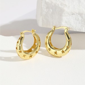 欧美个性铜镀18k保色高级光面耳环耳饰 魅力时尚镂空女士素圈耳扣