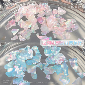 6格极光幻彩贝壳片美甲饰品跨境新品不规则天然超薄片diy指甲贴片