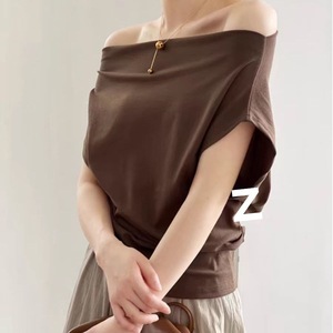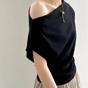 感黑色一字领t恤女夏季棉设计感小众短款露肩上衣针织短袖工厂