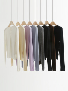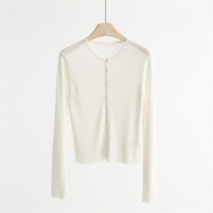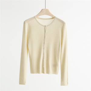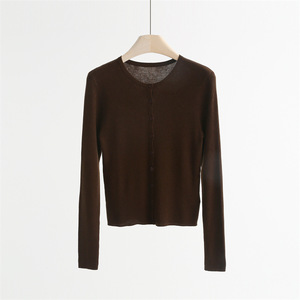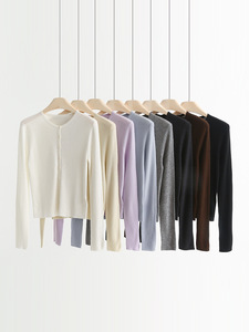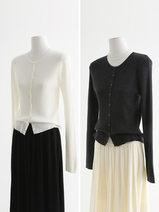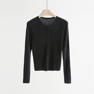 通勤简约醋酸羊毛圆领单排扣长袖针织开衫修身显瘦上衣内搭35931