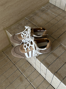 风莉雅拼色拼接系带德训鞋2025女鞋百搭运动休闲鞋平底阿甘鞋ins
