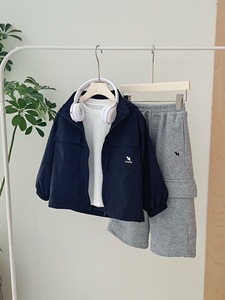 升升然2025秋款上新儿童工装风衣男女宝拉链连帽风衣
