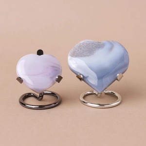 水晶爱心原石矿标心形水晶簇矿石化石标本收纳展示金属底座支架子