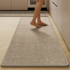 跨境亚麻地垫两件套组合厨房地垫编织长条地毯吸水加厚耐脏橡胶垫