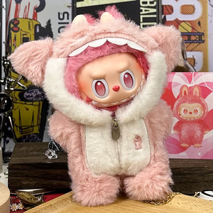 仅衣服适用labubu拉布布17cm厘米挂件公仔娃衣蓝色粉色鲨鱼连体服