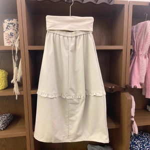 超韩系复古设计感半裙小个子拼接木耳边花苞裙简约俏皮高腰中长裙