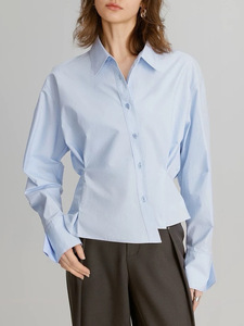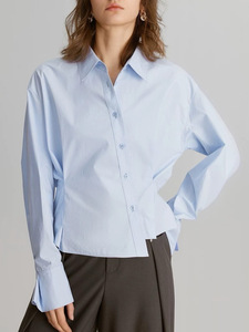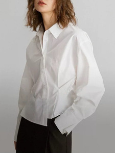 ELLE白色设计感褶皱短款衬衫女2025秋季新款别致宽松打底上衣
