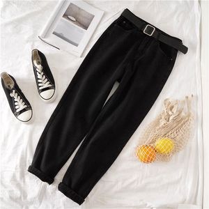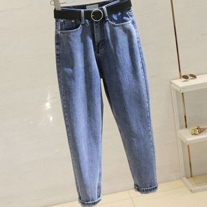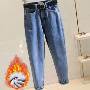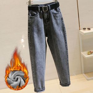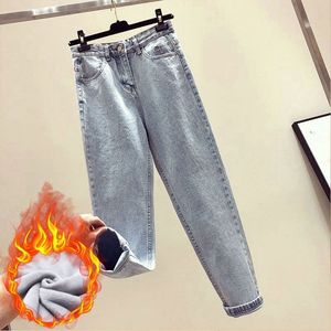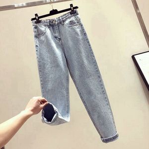 烟灰色牛仔裤女秋冬新款加绒宽松韩版显瘦高腰哈伦老爹九分萝卜裤