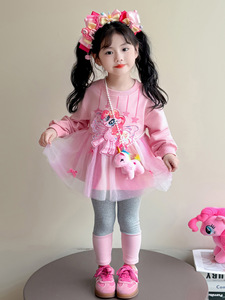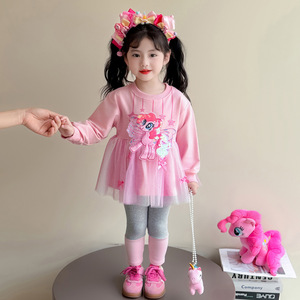 女童小马宝莉套装春秋装新款儿童装洋气女孩网纱卫衣打底裤两件套