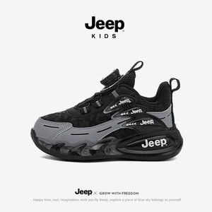 Jeep童鞋男童运动鞋2025新款春秋季青少年户外透气皮面儿童跑步鞋