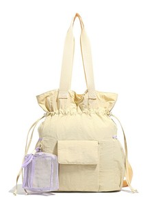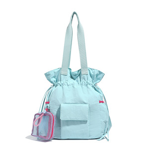 韩版休闲挎包多巴胺大容量抽绳褶皱托特包羽毛球拍运动收纳包男女