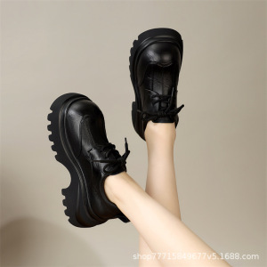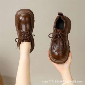 时尚松糕厚底乐福鞋女2025秋冬新款百搭复古英伦风圆头增高小皮鞋