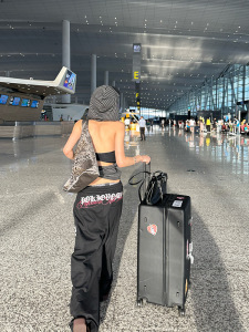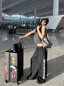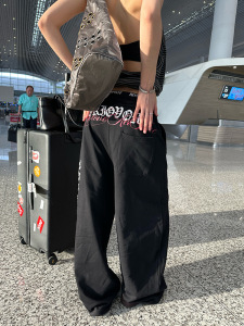 2025美式复古字母印花设计垂感抽绳休闲裤男女慵懒百搭拖地裤ins