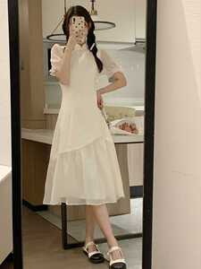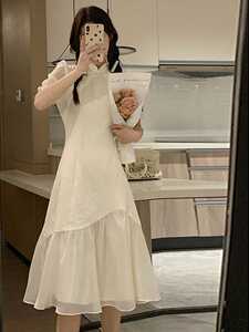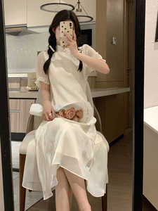 夏季新中式国风气质收腰显瘦改良旗袍连衣裙女洋气中长款连衣裙潮