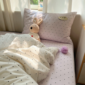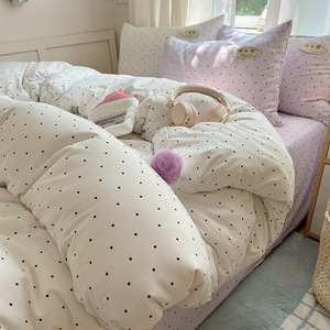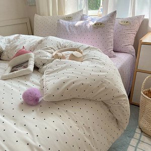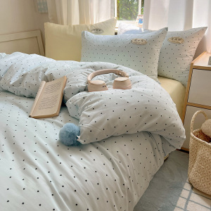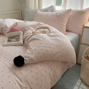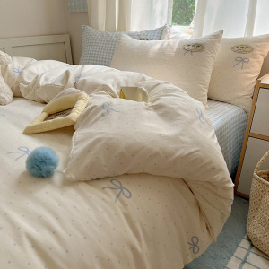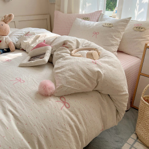 A类ins云柔水洗棉织标混搭蝴蝶结毛球少女奶呼呼仙气四件套学生