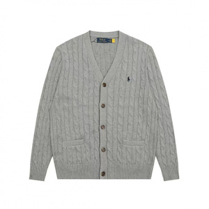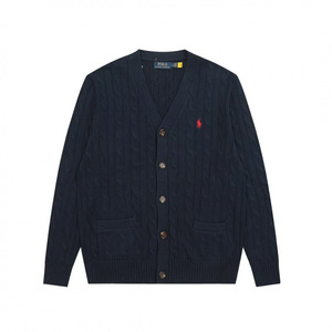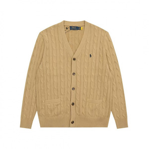 跨境外贸RL拉夫V领小马刺绣麻花针织开衫经典基础百搭四季款男女