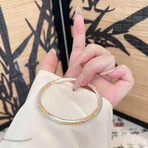 直播爆款2025新中式描金珐琅卷草纹宝相花手镯实心百搭闭口手镯