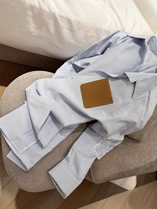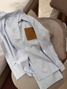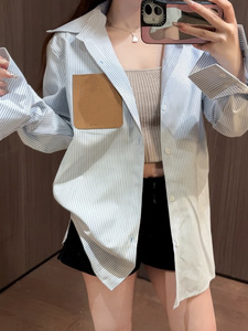 高版本【深圳南油】LE经典皮标口袋长袖条纹衬衫logo刺绣字母设计