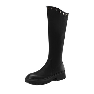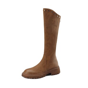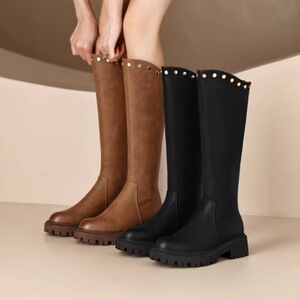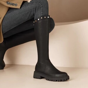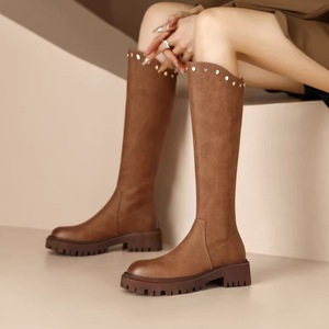 小个子增高厚底真皮长筒靴女2025新款秋冬显瘦高筒骑士靴中跟铆钉