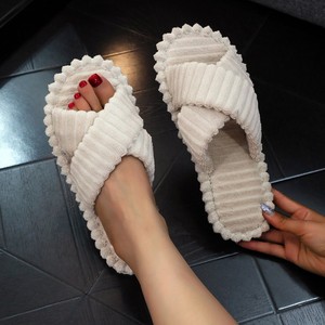 TEMU代发跨境爆款粗条交叉带露趾女士居家舒适四季棉拖鞋女秋冬