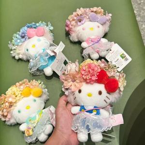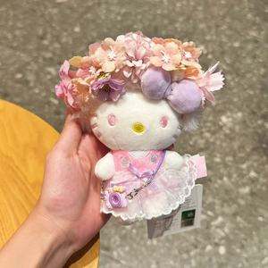 正版hellokitty簪花头套国风少女卡通包包挂件毛绒钥匙扣玩偶礼物