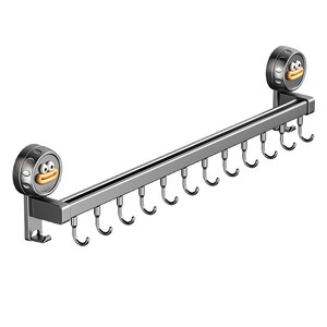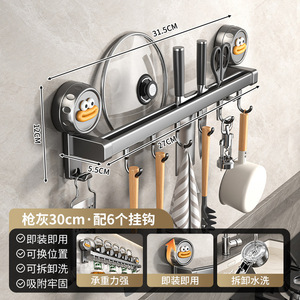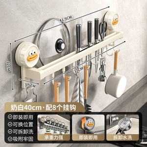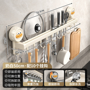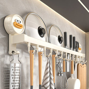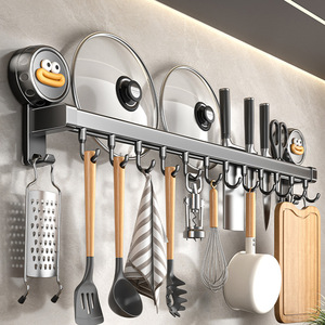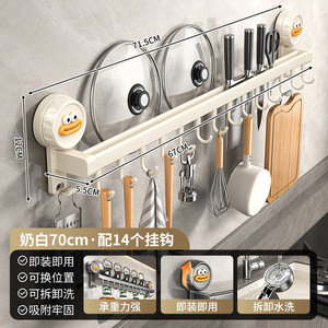 厨房吸盘免打孔挂杆锅铲勺子挂钩挂架多功能壁挂式收纳排钩置物架