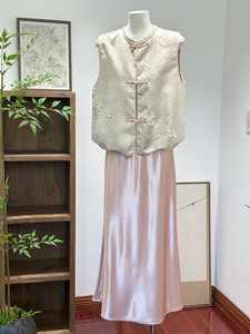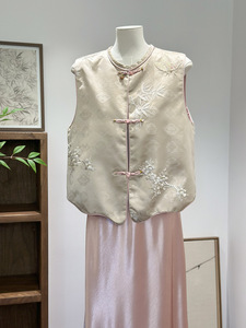 新中式马甲女重工蝴蝶刺绣提花年轻款改良唐装圆领无袖外穿坎肩秋