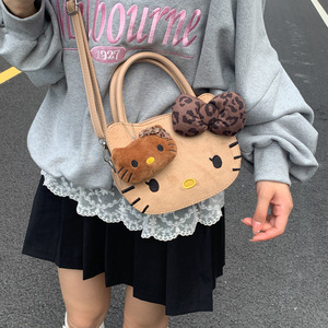 新款百搭小猫手提包精致女孩大容量斜挎包可爱卡通包出游休闲单肩
