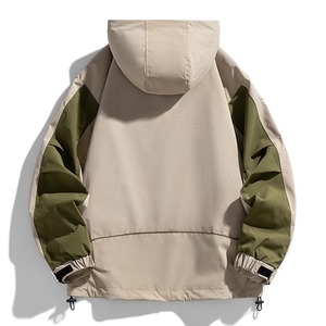 美式户外冲锋衣男拼色连帽登山防水机能工装夹克宽松春秋上衣外套
