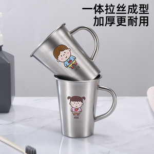 304不锈钢一家人漱口杯子儿童宝宝洗漱杯防摔牙刷杯带手把喝水杯