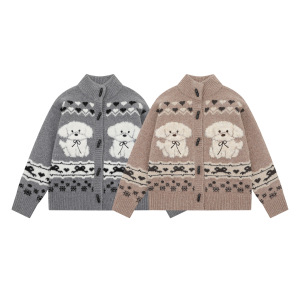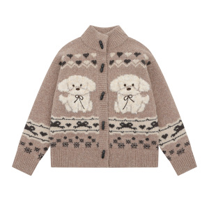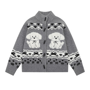 美式复古小狗提花针织开衫外套女秋冬软糯慵懒风高级感牛角扣毛衣