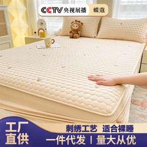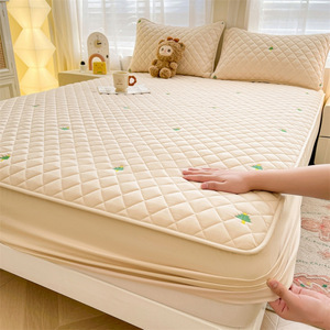 A类刺绣夹棉床笠席梦思水洗棉全包围刺绣床垫保护套宿舍床罩批发