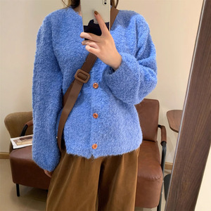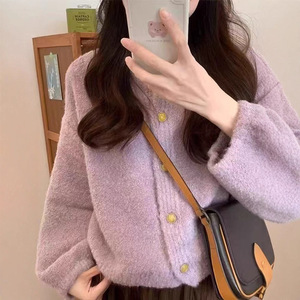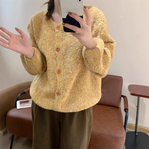 圈圈纱2025秋冬新款针织开衫外套设计感小众宽松慵懒风纯色毛衣女
