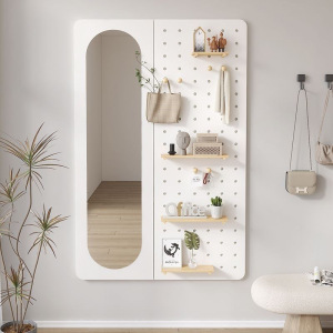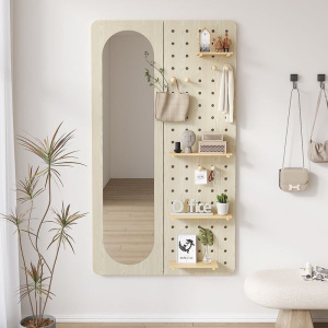 洞洞板穿衣镜一体家用卧室试衣镜玄关壁挂式全身镜挂墙衣帽架镜子