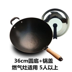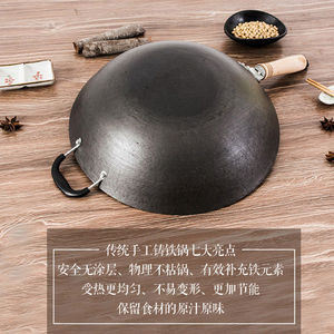 老式生铁锅炒锅无涂层平底锅不粘锅农村家用电磁炉煤气灶炒菜锅具