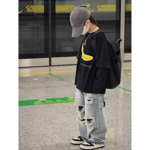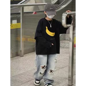儿童假两件卫衣秋季新款纯棉长袖T恤男女童韩版时尚拼接打底上衣