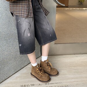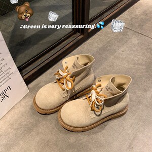 葡萄妈同款现货~ 增高4cm~时髦大圆头撞色双鞋带短筒马丁靴女秋