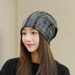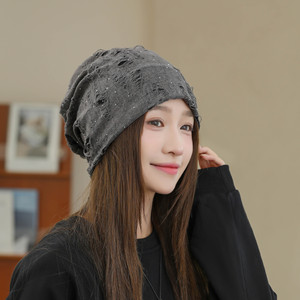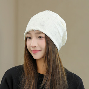 显脸小堆堆帽女秋冬大头围冷帽宽松时尚新款百搭水钻透气包头帽子