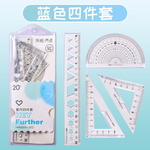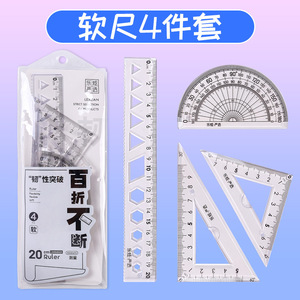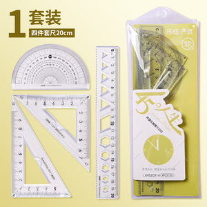 20cm软尺四件套装直尺学生绘图用三角版直尺量角器多规格套尺批发