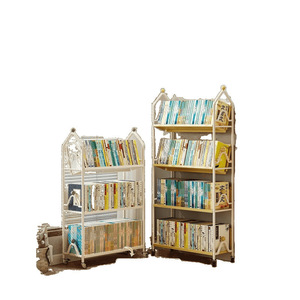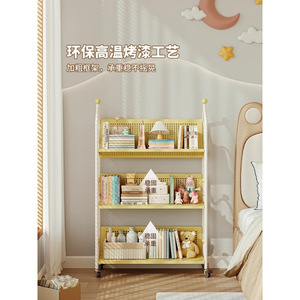 儿童铁艺书架绘本架子玩具收纳移动落地书柜简易多层置物架家用