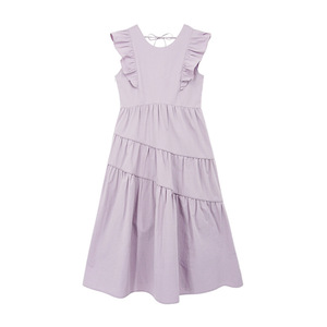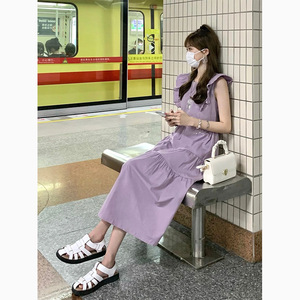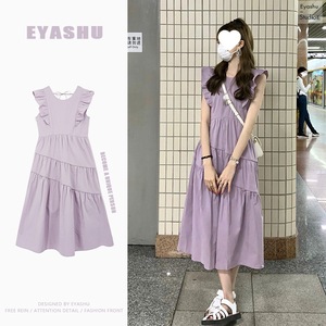 夏季别致法式甜美宽松显瘦茶歇a字裙女感收腰紫色连衣裙